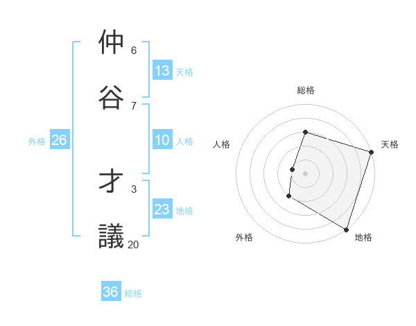 仲谷 才議さんを姓名の画数から五運を鑑定