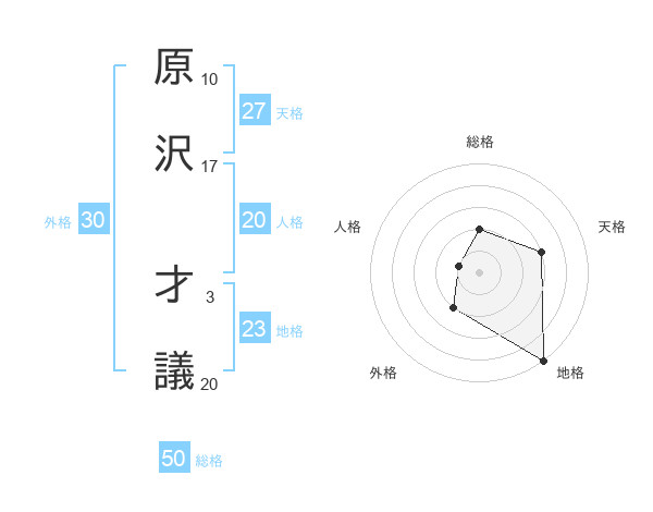 原沢 才議さんの総格は50画の2点!