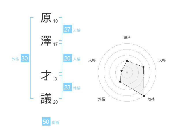 原澤 才議さんの総格は50画の2点!