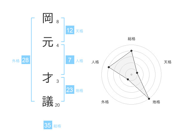岡元 才議さんの総格は35画の4点!