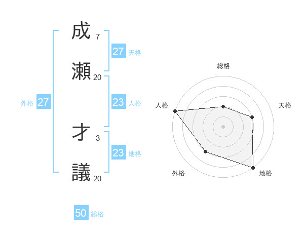 成瀬 才議さんを姓名の画数から五運を鑑定