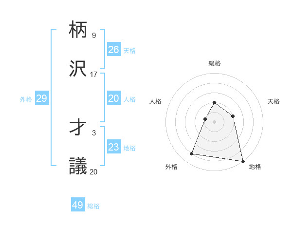 柄沢 才議さんを姓名の画数から五運を鑑定