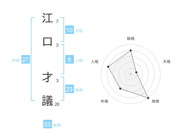 江口 才議さんの総格は33画の4点!