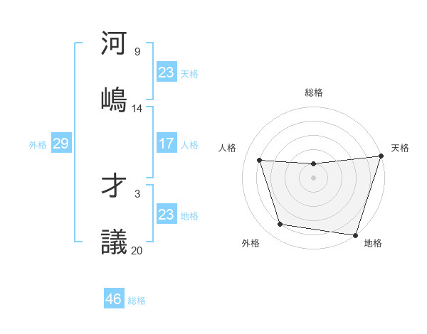 河嶋 才議さんの天格は23画の5点!