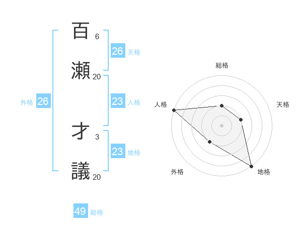 百瀬 才議さんの天格は26画の2点!