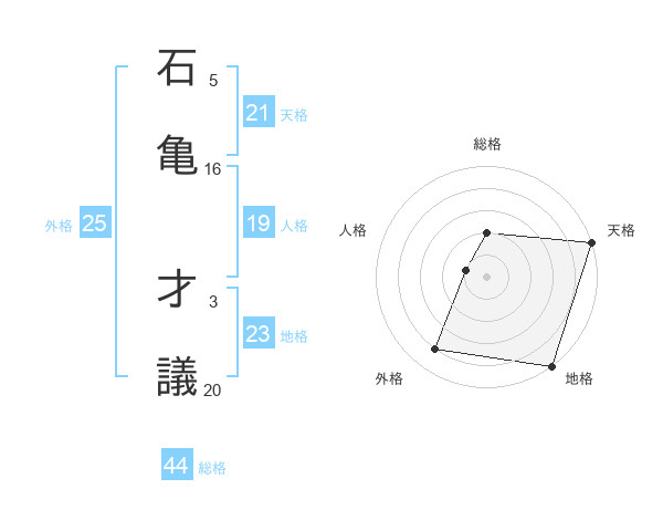 石亀 才議さんの天格は21画の5点!