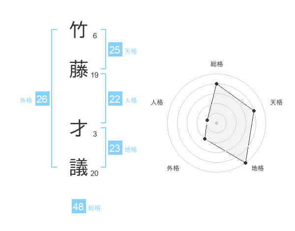 竹藤 才議さんを姓名の画数から五運を鑑定