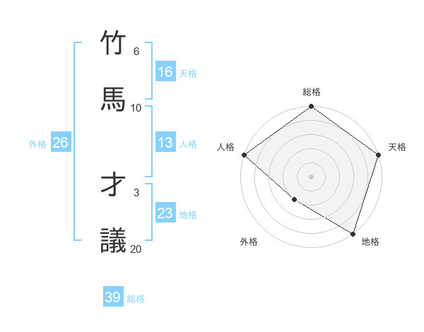 竹馬 才議さんの総格は39画の5点!