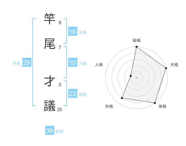 竿尾 才議さんを姓名の画数から五運を鑑定