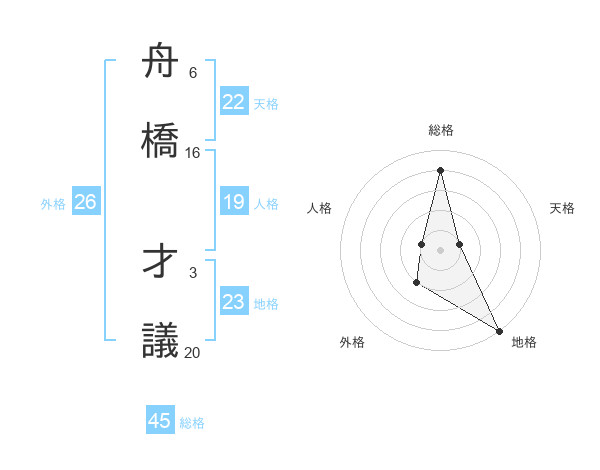 舟橋 才議さんを姓名の画数から五運を鑑定