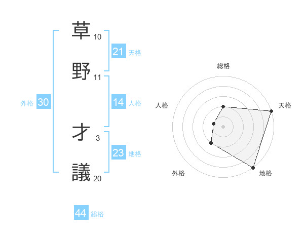 草野 才議さんの天格は21画の5点!