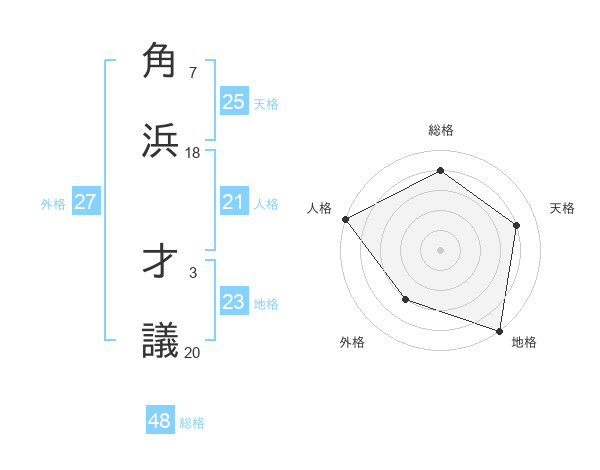 角浜 才議さんの地格は23画の5点!