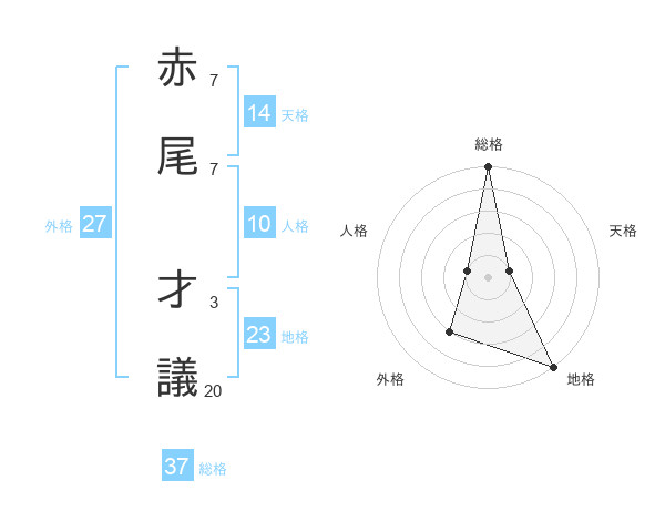 赤尾 才議さんを姓名の画数から五運を鑑定