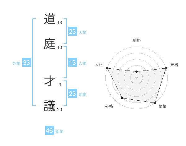 道庭 才議さんの天格は23画の5点!