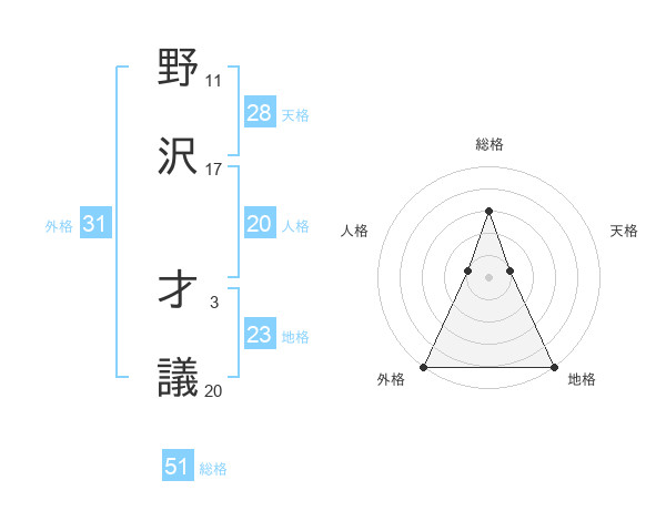 野沢 才議さんの総格は51画の3点!