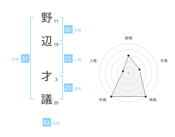 野辺 才議さんの総格は53画の3点!