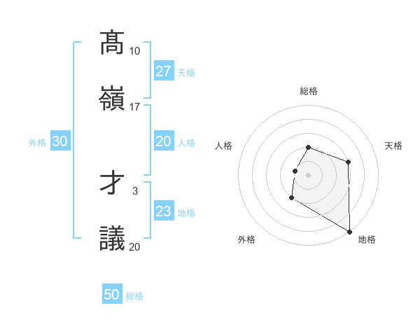 髙嶺 才議さんの総格は50画の2点!