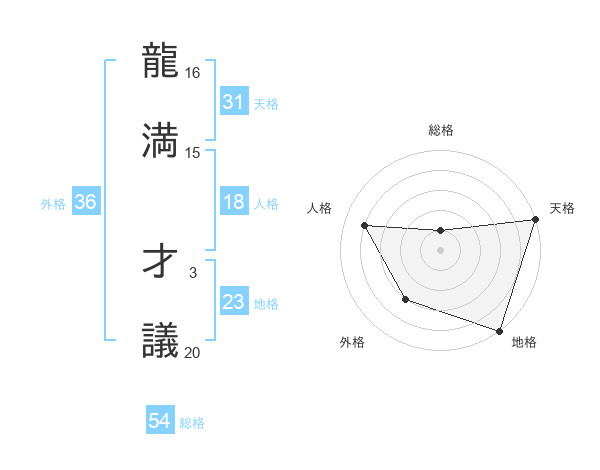 龍満 才議さんの総格は54画の1点!