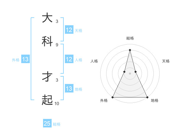 大科 才起さんの外格は13画の5点!