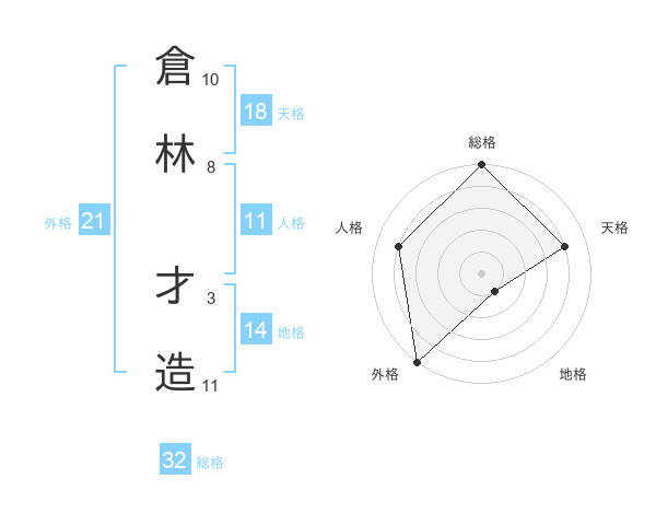 倉林 才造さんの総格は32画の5点!