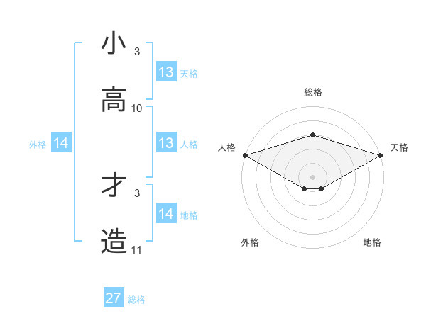 小高 才造さんの天格は13画の5点!