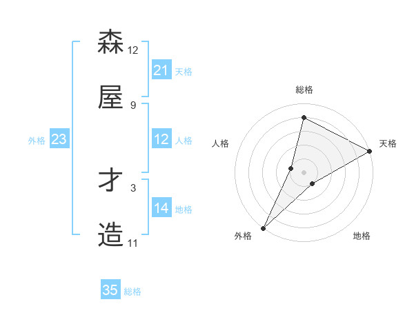 森屋 才造さんの天格は21画の5点!