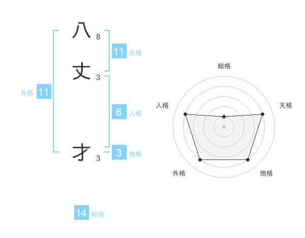 八丈 才さんの外格は11画の4点!
