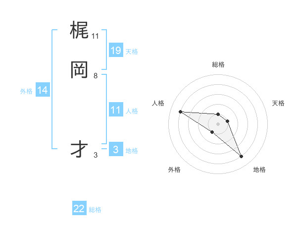 梶岡 才さんの総格は22画の1点!