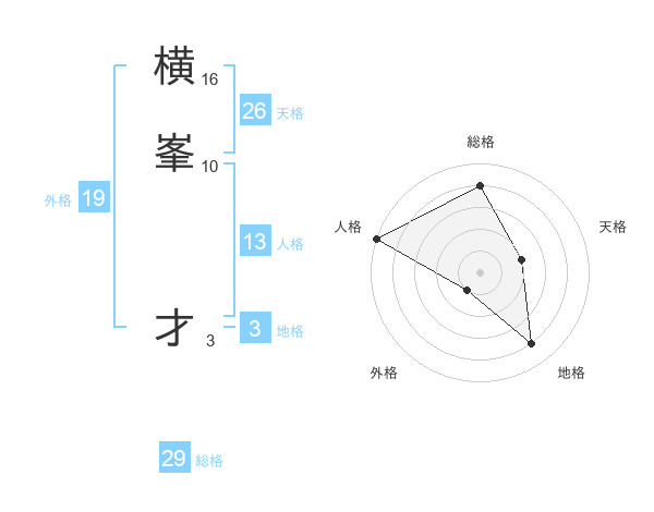 横峯 才さんの総格は29画の4点!