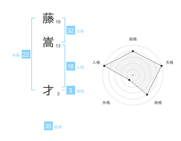 藤嵩 才さんの天格は32画の5点!