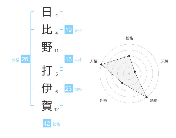 日比野 打伊賀さんを姓名の画数から五運を鑑定