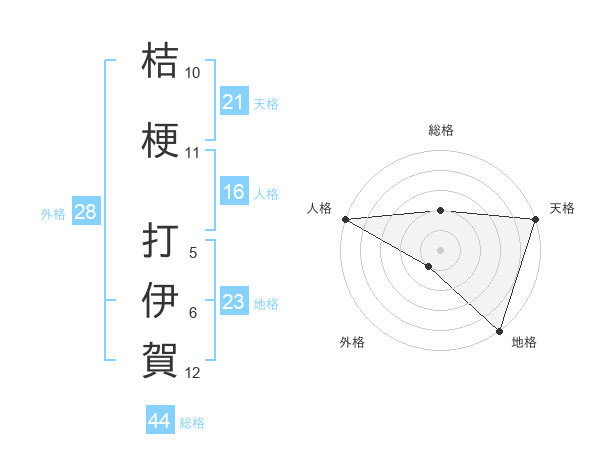 桔梗 打伊賀さんを姓名の画数から五運を鑑定