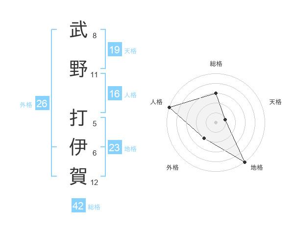 武野 打伊賀さんを姓名の画数から五運を鑑定