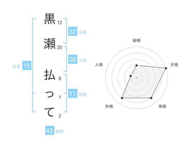 黒瀬 払ってさんの総格は43画の2点!