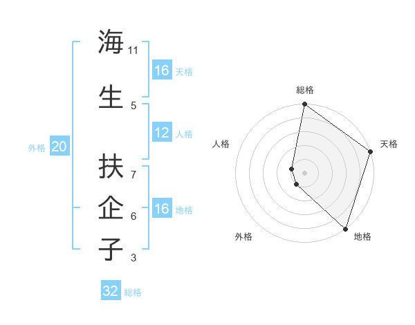 海生 扶企子さんの天格は16画の5点!