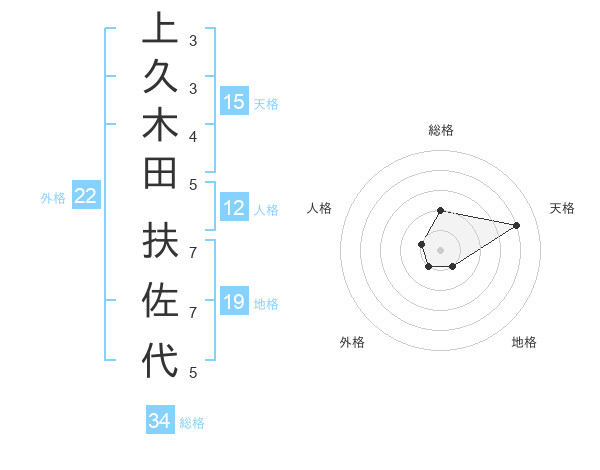 上久木田 扶佐代さんを姓名の画数から五運を鑑定