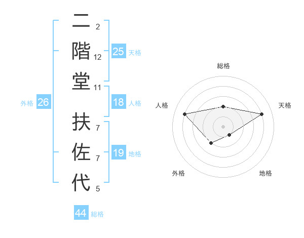 二階堂 扶佐代さんの総格は44画の2点!