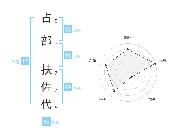 占部 扶佐代さんの天格は16画の5点!