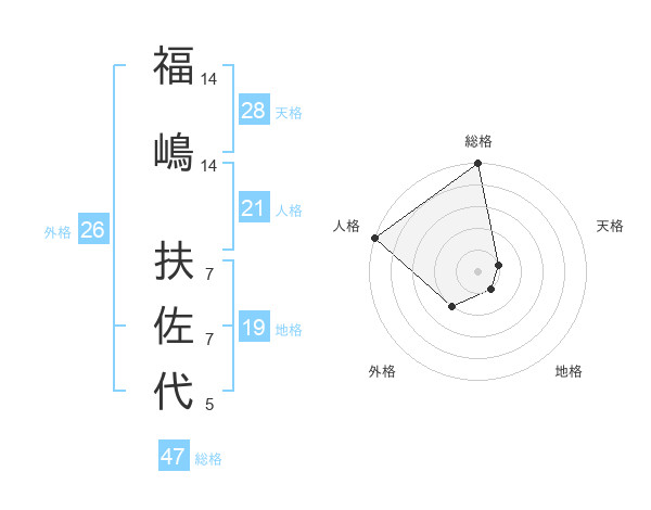 福嶋 扶佐代さんを姓名の画数から五運を鑑定