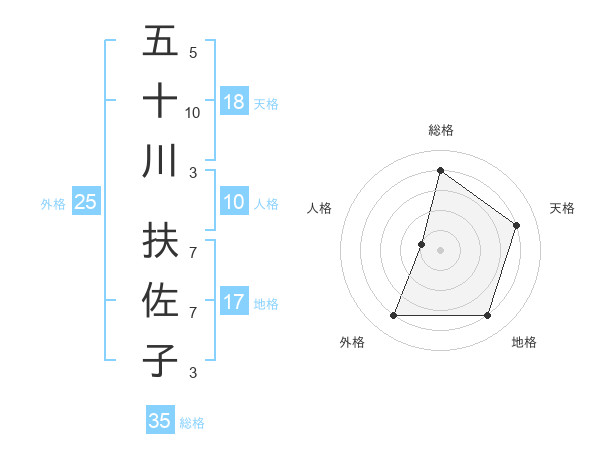 五十川 扶佐子さんを姓名の画数から五運を鑑定