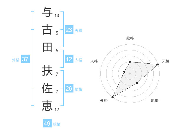 与古田 扶佐恵さんを姓名の画数から五運を鑑定