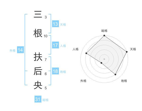 三根 扶后央さんを姓名の画数から五運を鑑定