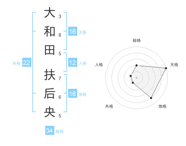 大和田 扶后央さんを姓名の画数から五運を鑑定