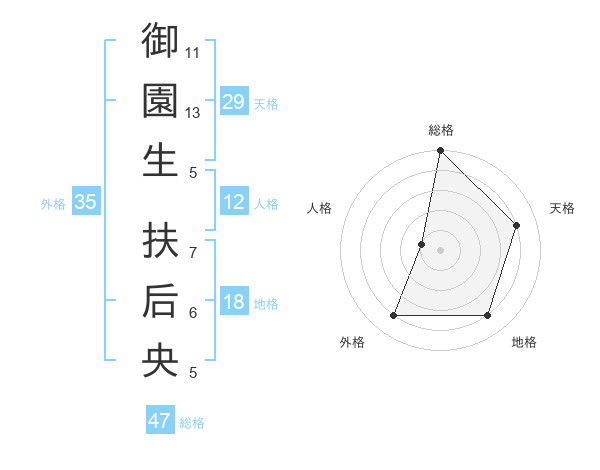 御園生 扶后央さんの総格は47画の5点
