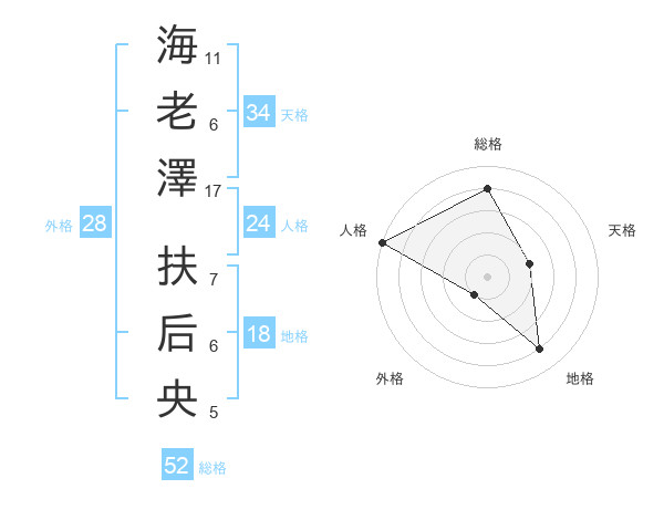 海老澤 扶后央さんの総格は52画の4点!