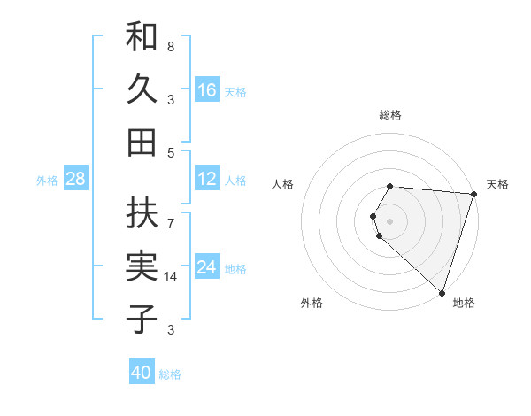 和久田 扶実子さんを姓名の画数から五運を鑑定