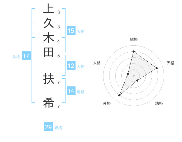 上久木田 扶希さんの天格は15画の4点!