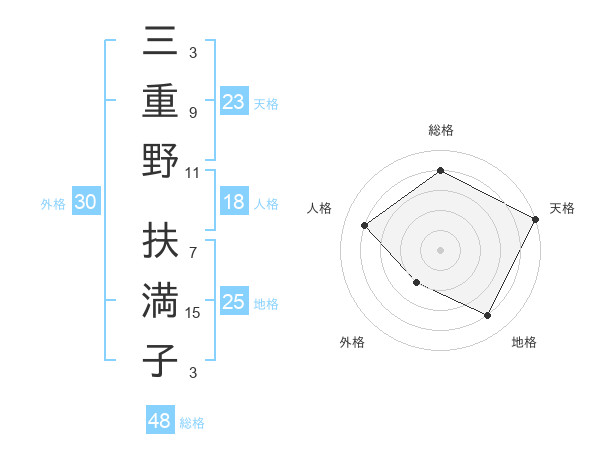 三重野 扶満子さんを姓名の画数から五運を鑑定