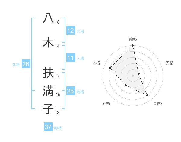 八木 扶満子さんを姓名の画数から五運を鑑定