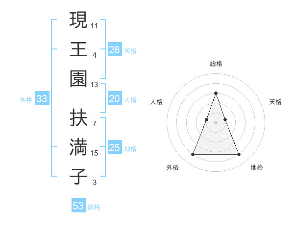 現王園 扶満子さんの外格は33画の4点!